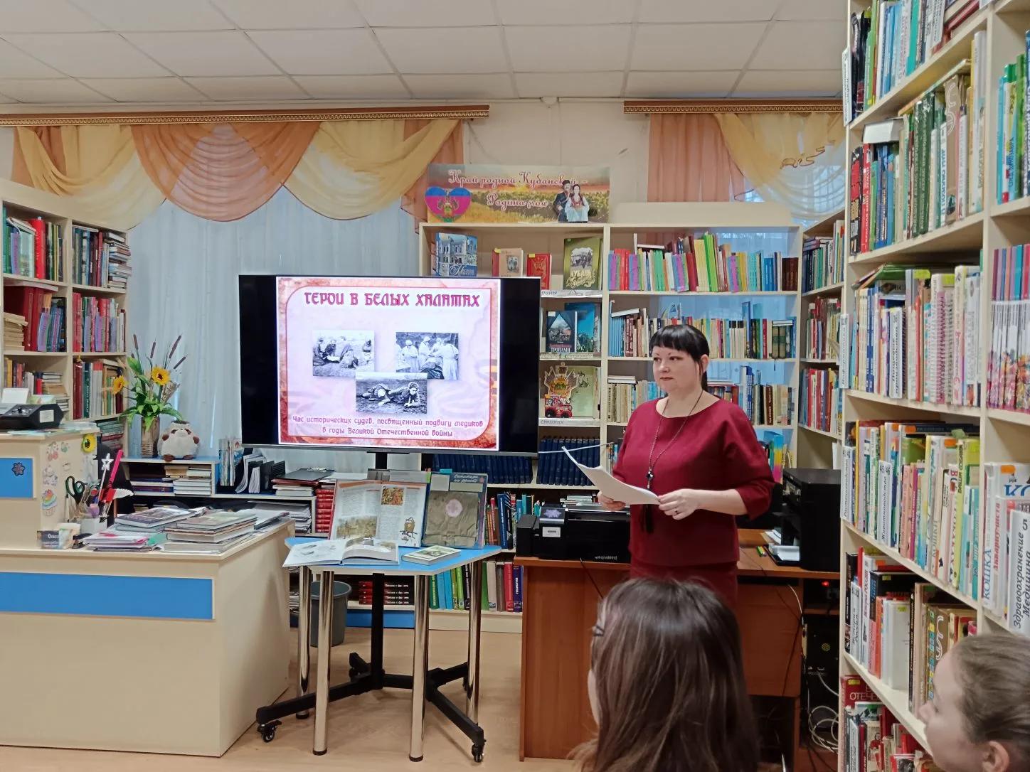 Библиотекарь Белоглинской поселенческой детской библиотеки провела для учащихся 5 "В" класса СОШ №9 час исторических судеб, посвященный героям, которые под вражеским огнем выносили раненых с поля боя и оказывали помощь в госпиталях. Присутствующие узнали о вкладе медиков в победу и их героизме в условиях войны. В ходе мероприятия участники познакомились с деятельностью выдающихся специалистов: главном хирурге страны Николае Бурденко, создавшем медицинскую доктрину в годы войны, и Зинаиде Ермольевой, остановившей эпидемию холеры и создавшей первый отечественный антибиотик — пенициллин. Ведущая рассказала ребятам о подвигах хирургов на фронтах Великой Отечественной войны. Женщины-медики также внесли огромный вклад, не щадя себя, поднимая раненых с больничных коек и возвращая их на фронт. Среди них выделяется Зинаида Туснолобова-Марченко, которую называют женщиной-легендой, подвиги Марии Кухарской и Валерии Гнаровской.
